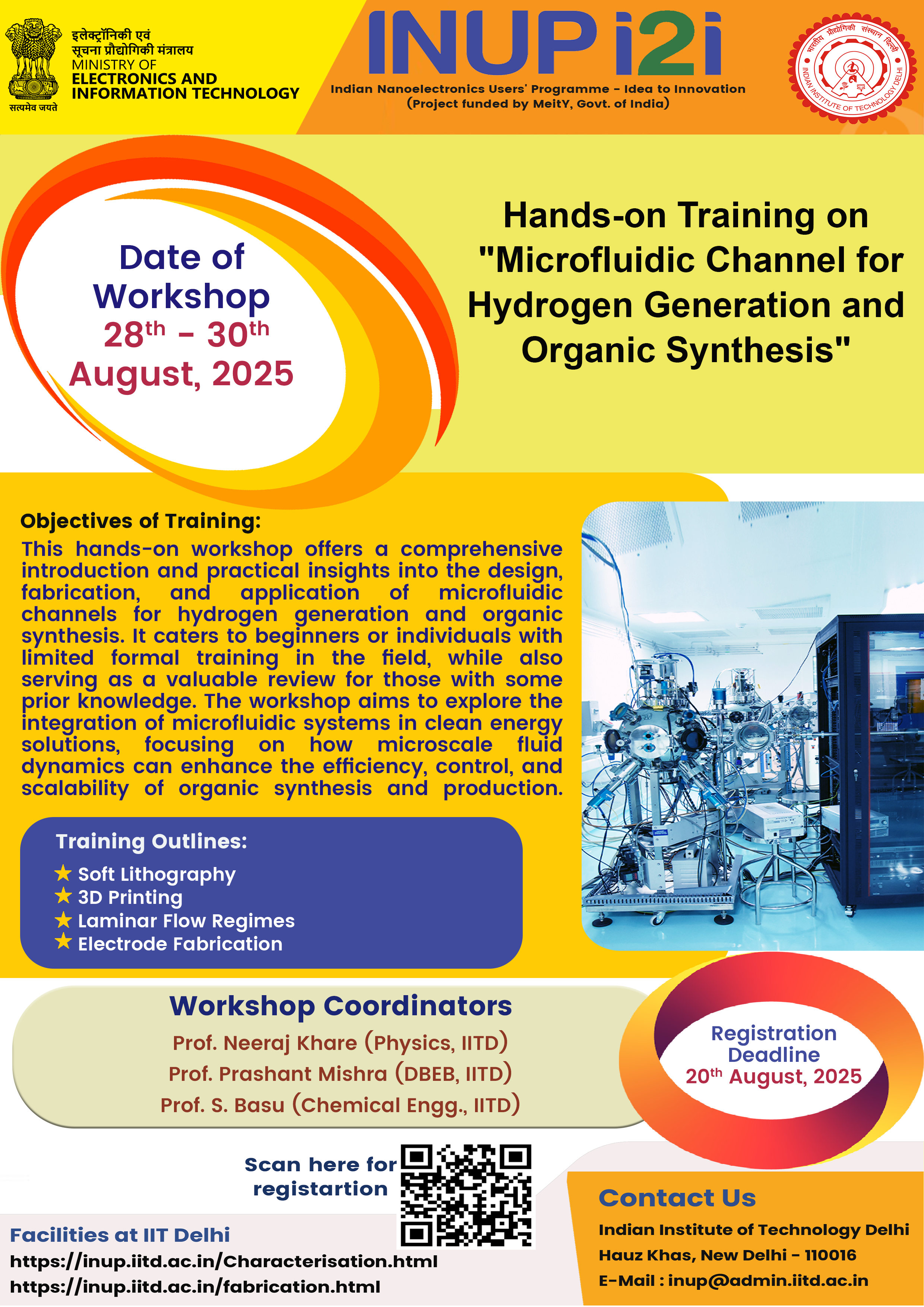 | 2 | Hands-on Training on Microfluidic Channel for Hydrogen Generation and Organic Synthesis | 28-08-2025 | 30-08-2025 | Link |